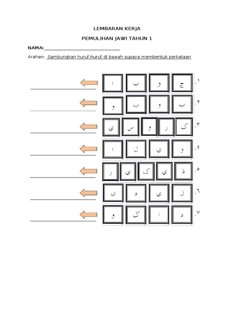 Related : Lembaran Kerja Jawi Tahun 2 : Untuk tahun 1 perlu menampal suku kata jawi dengan suku kata rumi..