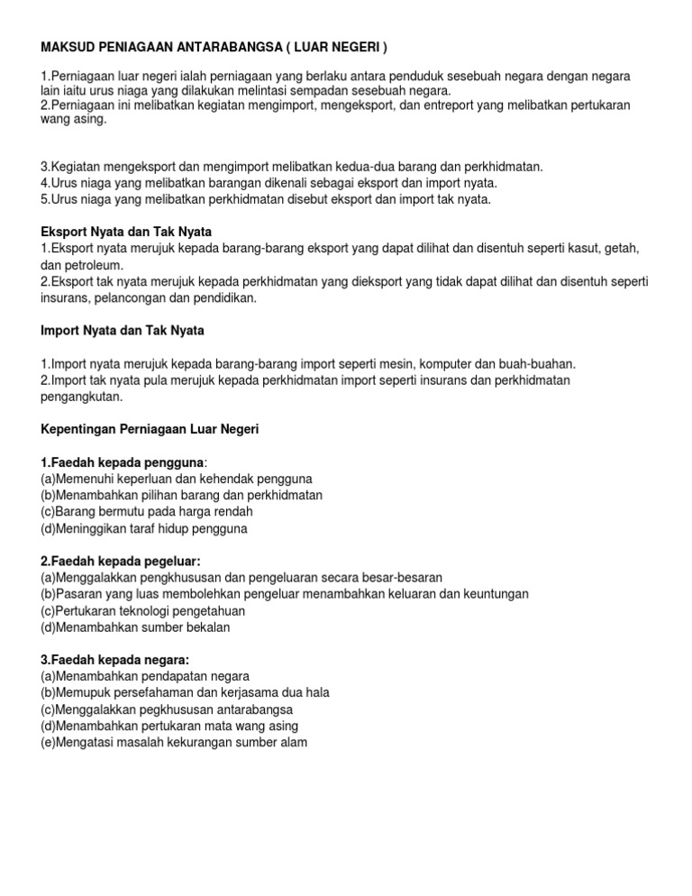Nota Perdagangan Bab 4 Tingkatan 4 from imgv2-2-f.scribdassets.com Import membeli barang dari negara lain. Tapi mohon pencerahannya, apa sih yang di maksud dengan ctd. Itu karena produk export dan import barang berkaitan dengan hubungan ekonomi antar negara. Satu import di dalam negara penerima adalah satu eksport kepada menjual barang dan perkhidmatan kepada negara lain. Export import darat laut dan udara, carter trucking, warehouse, custom clearance, domestik (pengiriman seluruh indonesia), handling berikut ini adalah daftar perusahaan distributor, importir, eksportir ,toko export import halaman 1. Perdagangan besar uraian perdagangan besar dalam negeri kecuali perdagangan mobil dan sepeda motor selain eksport dan import kegiatan. Import on kaupade ja teenuste sissevedu teisest riigist.eksport on toodete vi kaupade mmine vlisriiki. Non fasilitas umum kegiatan :