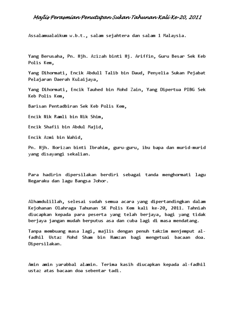 Teks Ucapan Perasmian Penutup Sukan / Teks Majlis Juruacara Penutupan Pdf Document - Check spelling or type a new query.